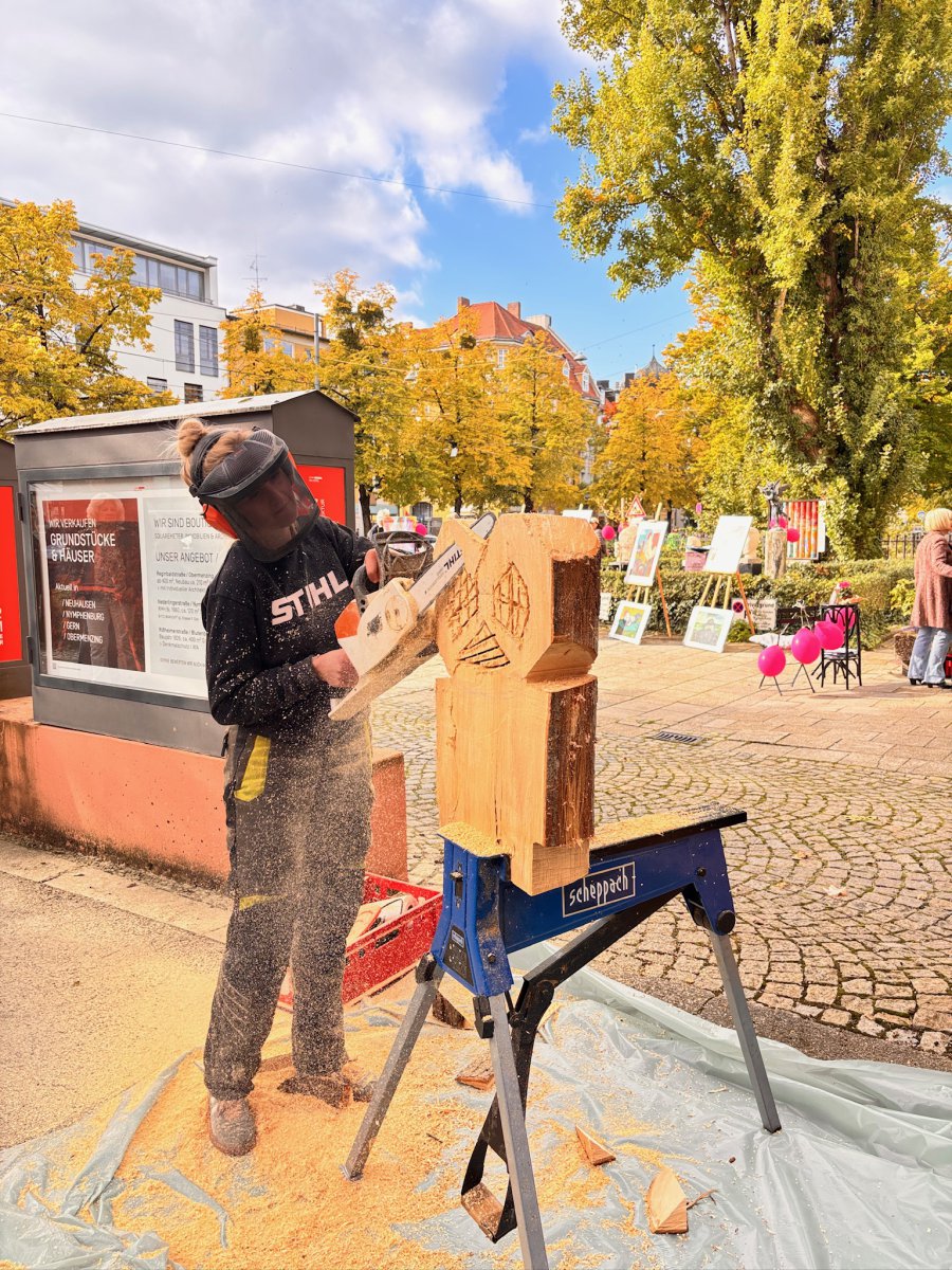 Ein sonniges Wochenende anlässlich der Kultüren liegt hinter uns. Die Holz-Skulpturen von Pia Eisenhut haben Spaß und gute Laune verbreitet, vor allem der Live-Act "BREZE". Pia legte vor Ort Hand an und sägte die bayerische Leibspeise vor Ort. Wir freuen uns, bekannte und neue Gäste und Gesichter bei uns begrüßen zu dürfen. Die Ausstellung ist noch bis Ende März in unserem SQUARE METER Showroom in der Nymphenburger Straße 182 zu besuchen. Einige Immobilieninteressierte waren auch unter den Gästen, wir hoffen bald den passenden "Match" herzustellen.