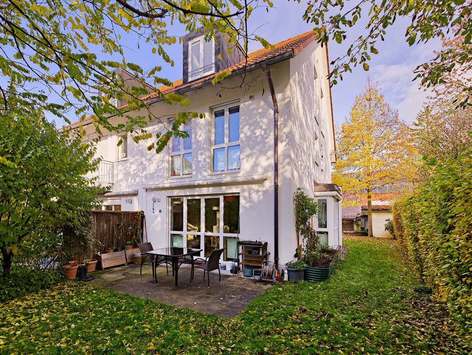 Eingebettet zwischen wertvollem Altbaumbestand bietet dieses gemütliche Reihenendhaus so ziemlich alles, was man sich wünschen kann. Drei Etagen bieten reichlich Platz für die ganze Familie: das Erdgeschoss, dessen geräumiges Wohnzimmer sich zu einem gepflegten, privaten Terrassengarten hin öffnet, zwei große Schlafzimmer im Obergeschoss, jedes mit eigenem außenliegenden Bad, und ein Dachgeschoss mit ebenfalls zwei Zimmern und einem Anschluss für ein weiteres Bad. Im Keller befindet sich die energieeffiziente Pelletheizung mitsamt Pelletlager und einem beheiztem Hobbyraum.