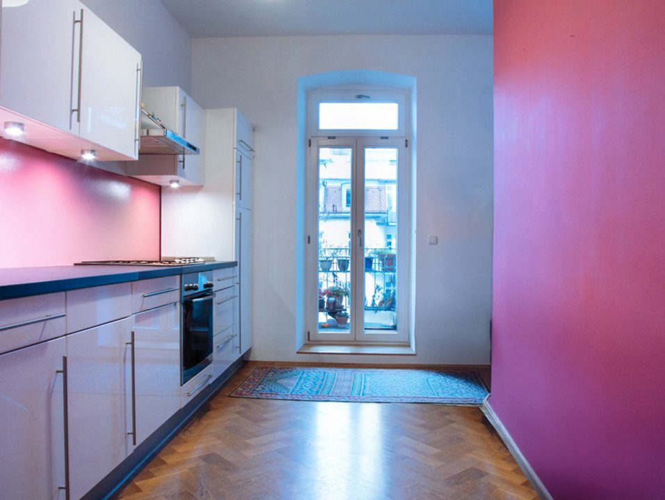 Die 2,5 Zimmer Wohnung selbst besticht durch eine Deckenhöhe von 2,80 Metern und eine lichtdurchflutete Atmosphäre, die durch die Kombination aus originalem Fischgrätparkett und neuem Eichenvollholz unterstrichen wird. Die offene, geräumige Wohnküche bildet das Herzstück der Wohnung, während der nach Westen ausgerichtete Balkon einen privaten Rückzugsort zum ruhigen, begrünten Innenhof bietet. Hochwertige Holzkassettentüren und zweifach verglaste Kunststoff- und Holz-Fenster runden das Bild dieser kernsanierten Immobilie ab.