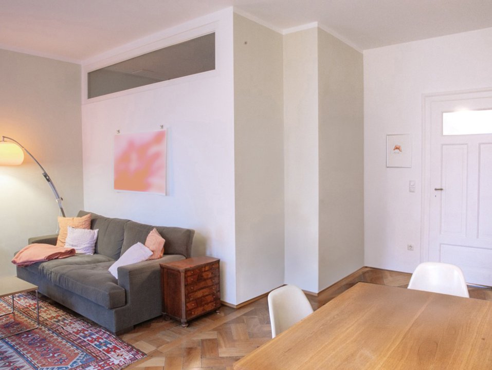 In einem denkmalgeschützten Altbau im Stil des Neubarock im szenigen Dreimühlenviertel befindet sich diese freundliche Wohnung in der zweiten Etage, die zeitlose Architektur mit modernstem Wohnkomfort vereint. Der Münchner Architekt und Bauherr Georg Müller plante und errichtete das Mietshaus für das gehobene Bürgertum um die Jahundertwende.