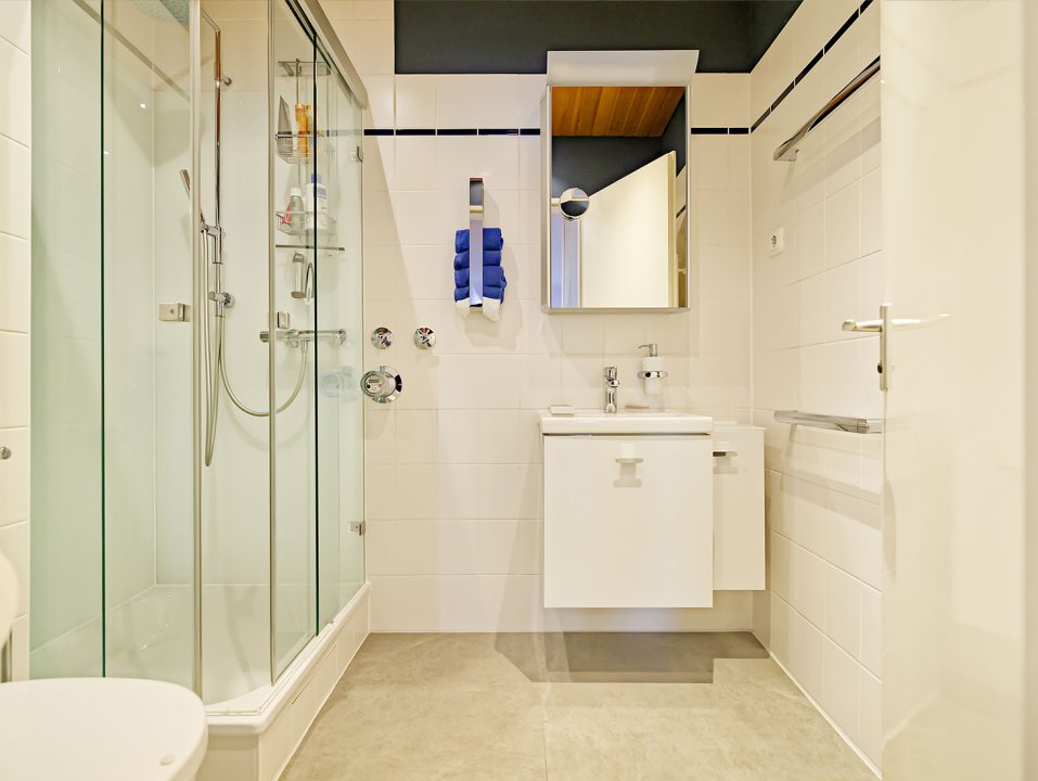 Auf über 95 m² entfaltet sich ein helles Raumkonzept, das durch edle, weiß geölte Eichendielen und ein einladendes Entreé mit maßgefertigten Einbauschränken besticht. Die großzügige Süd-Loggia mit elektrischen Markisen erweitert den Wohnbereich ins Freie und blickt auf die parkähnlichen Grünflächen der Anlage.