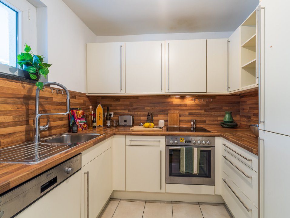 Auch im Detail überzeugt die Ausstattung: Das hochwertig sanierte Badezimmer verfügt über eine komfortable, ebenerdige Dusche und einen Waschmaschinenanschluss. Zusätzliche Flexibilität bieten der gemeinschaftliche Wasch- und Trockenraum sowie die sicheren Abstellräume für Fahrräder und