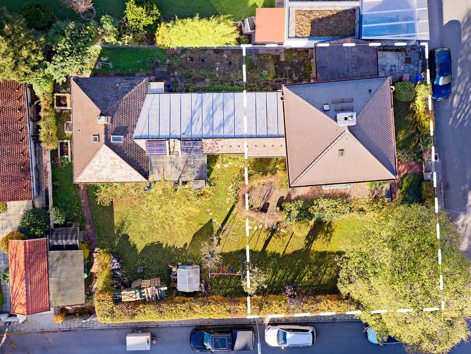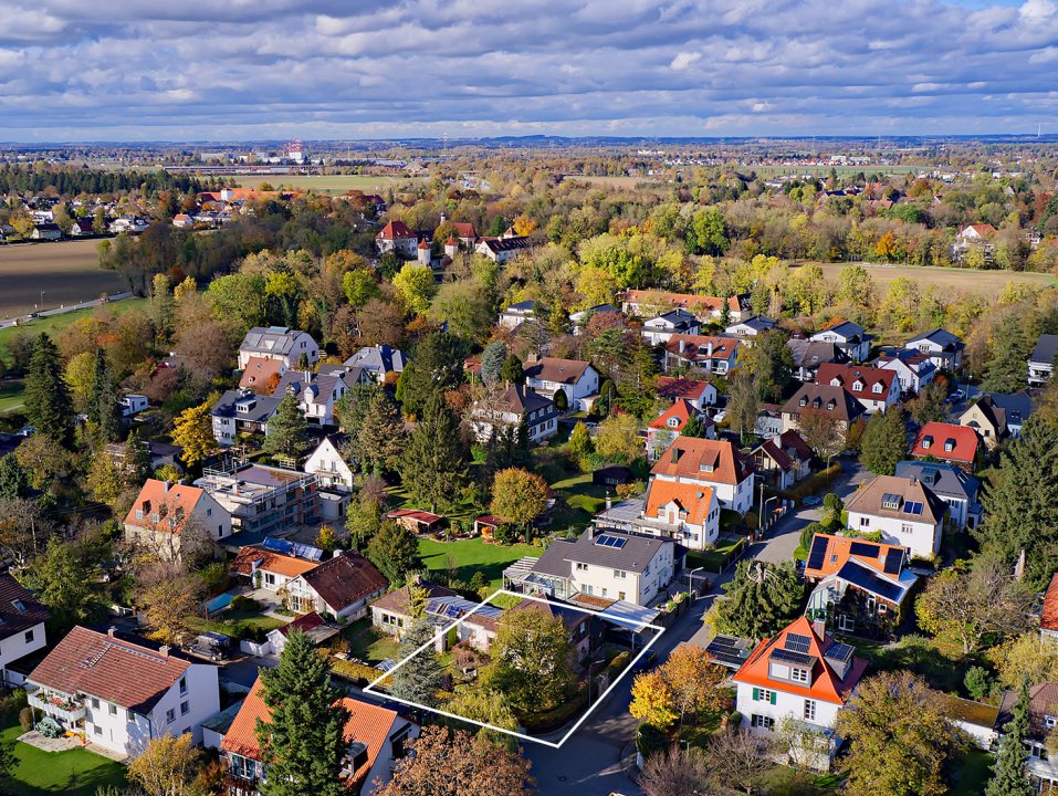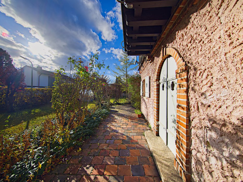Viel Licht und Sonnenschein - die hervorragende Lage an der Ecke Rißheimer-/ Sedelhofstraße unterstreicht den Baustil eines ländlichen „Sommerhauses“. Anfang 1960 wurde das Haus um einen Anbau erweitert. Dieser Teil steht nicht unter Denkmalschutz und kann im Zuge einer neuen Bebauung auf dem westlichen Grundstücksteil rückgebaut werden.