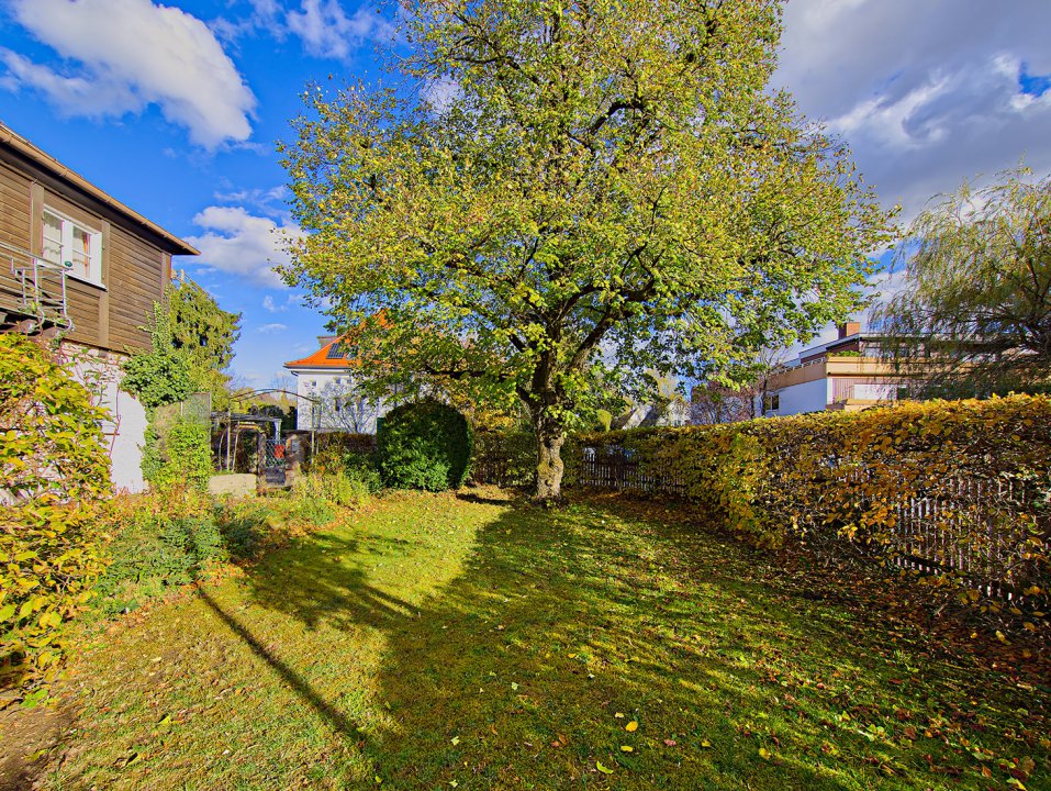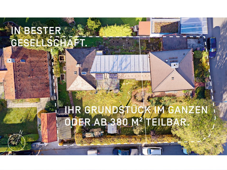 Das Grundstück ist 824 m² groß und kann im Verkauf ab ca. 419 m² in zwei Grundstücke geteilt werden.