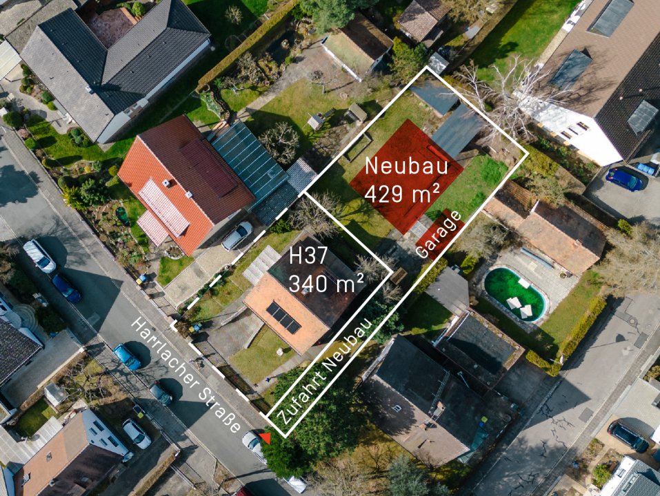 Das Grundstück in der Harrlacher Straße 37 wird geteilt und bietet im rückwärtigen Bereich Raum für ein weiteres Einfamilienhaus mit ca. 120 - 140 m² Wohnfläche.