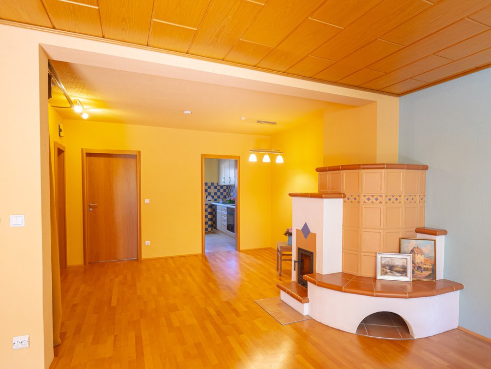 Einbauküche, Markise, Kachelofen, 2-fach verglaste Fenster |