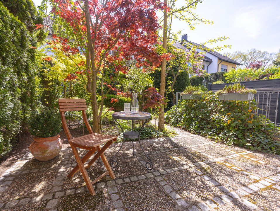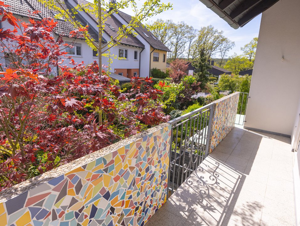 automatischem Tor komplettieren das Angebot. Der Außenraum ist malerisch und romantisch angelegt. Die Terrasse verfügt über eine neue Markise, die Loggia im 1. OG ist kreativ mit Mosaik belegt.